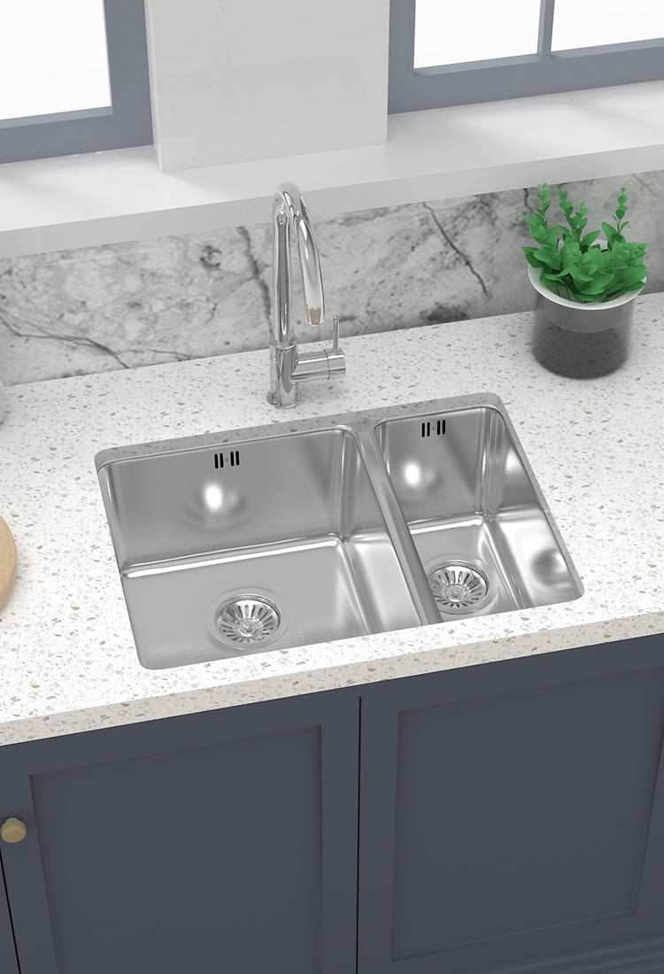 JASSFERRY Brilliant Stainless Steel Kitchen Sink Double Bowl Righthand Drainer -663