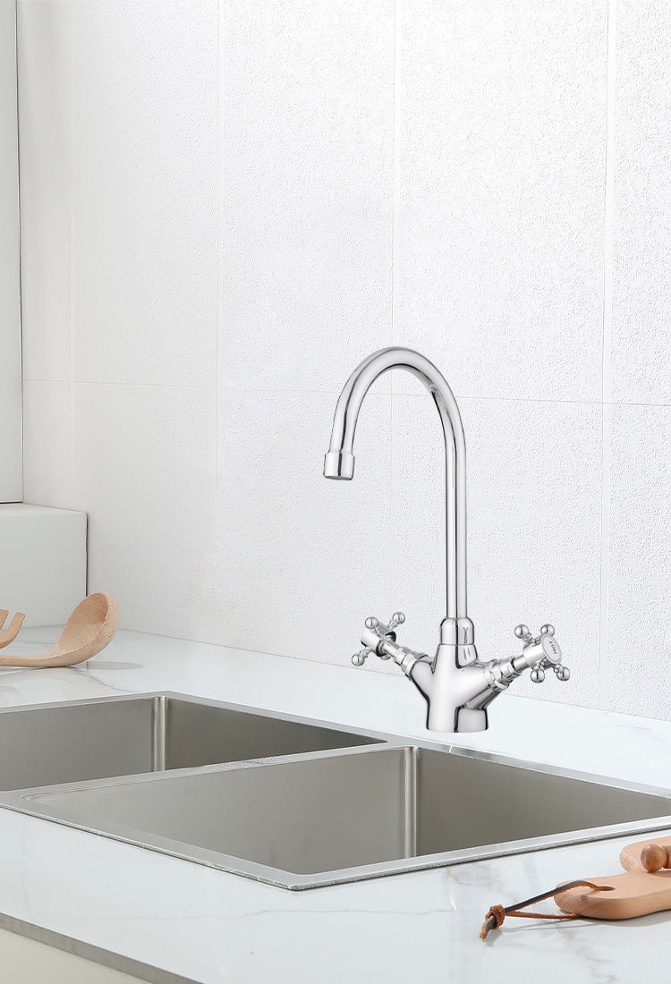 JASSFERRY New Mono Kitchen Mixer Taps Swivel Spout Dual Lever Polished Chrome -9207