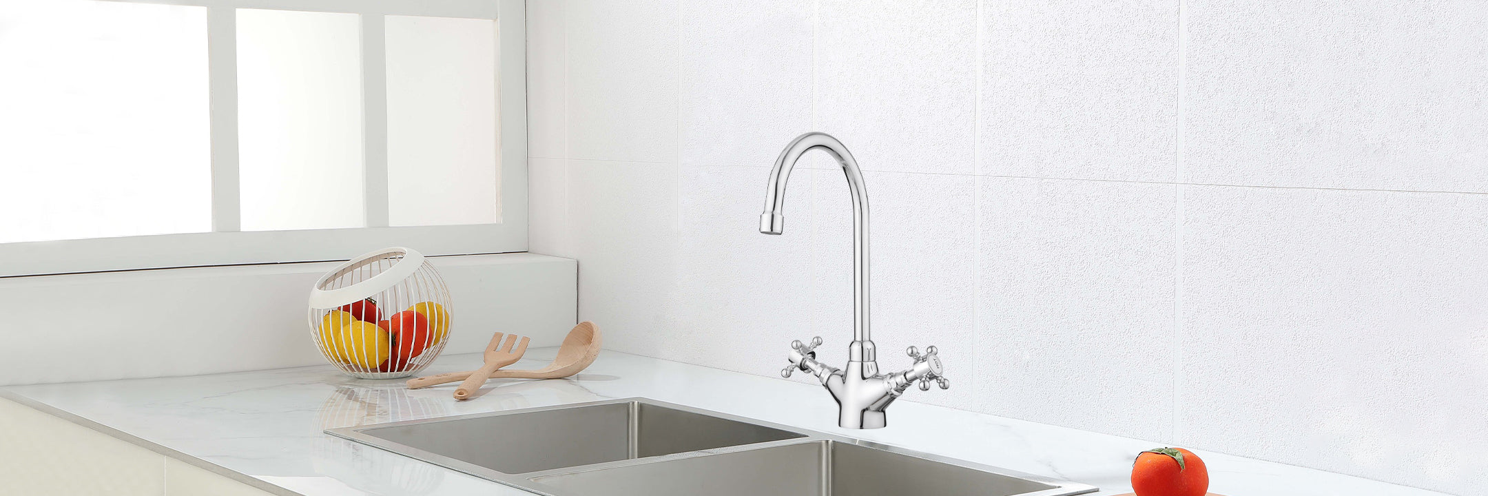 JASSFERRY New Monobloc Mixer Taps Double Lever Kitchen Sink Polished Chrome -9208