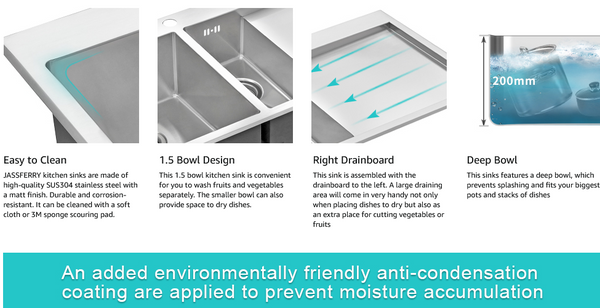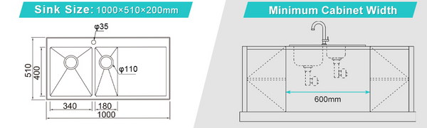- - Bowl Dimensions: 400 x 340 mm, 400 x 180 mm (L x W)
